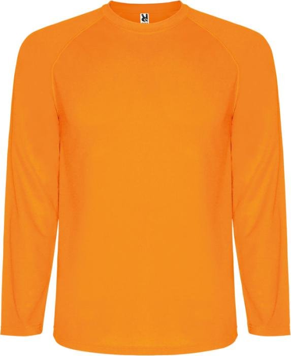 Technical long-sleeve raglan t-shirt. Matching overlock in sleeves (without side seams). Covered seams in collar. Breathable easy-wash and dry fabric. Removable label. Piqué knit of 100% Polyester, 150 g/m2.