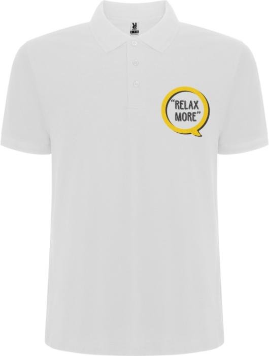 Short-sleeve polo shirt. Collar and sleeves edging in 1×1 ribbed fabric with detail. 3-button placket. Reinforced covered seams in collar. Side slits and optional pocket. Washable at 60 degrees. Removable label. Anti-pilling treatment. Piqué knit of 60% Cotton and 40% Polyester, 190 g/m2.