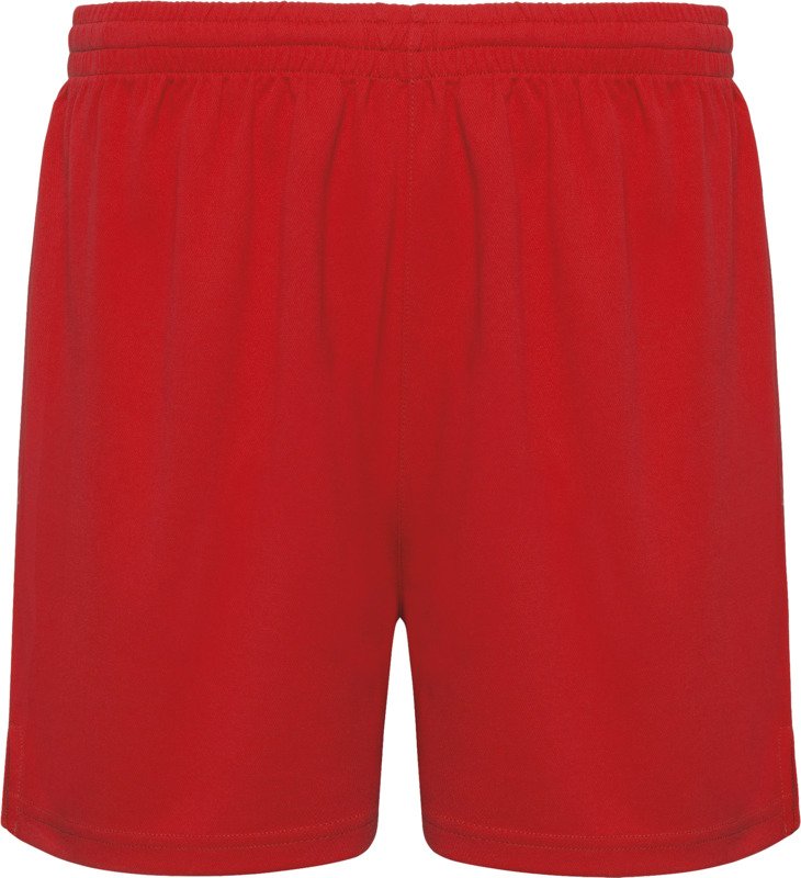 Sports shorts without inner slip and ajustable elastic waist with drawcord. Breathable piqué fabric, easy to wash and dry. Removable label. Technical fabric. Piqué knit of 100% Polyester, 140 g/m2.